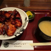照りのあるタレが絡んだ肉厚の豚肉が数枚丼の上にのせられており、なかなか美味しかったです。