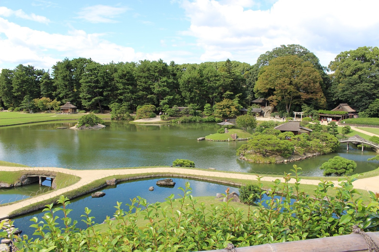 後楽園の中心部にある大きな池です。池の中には3つ島があるようですが、当初は一つの島として繋がっていたとのこと。江戸時代に今の切り離された景観になったようです。近くに行くと島に橋で渡ってみたくなりますがそれはできないので近くで写真を撮りました。
