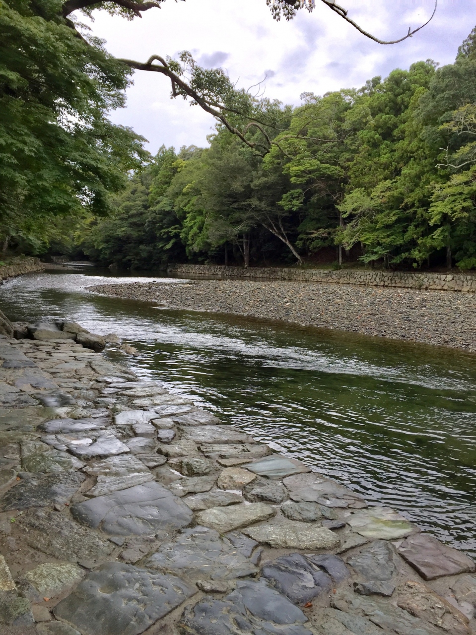 五十鈴川の流れだけでも癒されます。意外に水深があってびっくり!水もきれいでした。