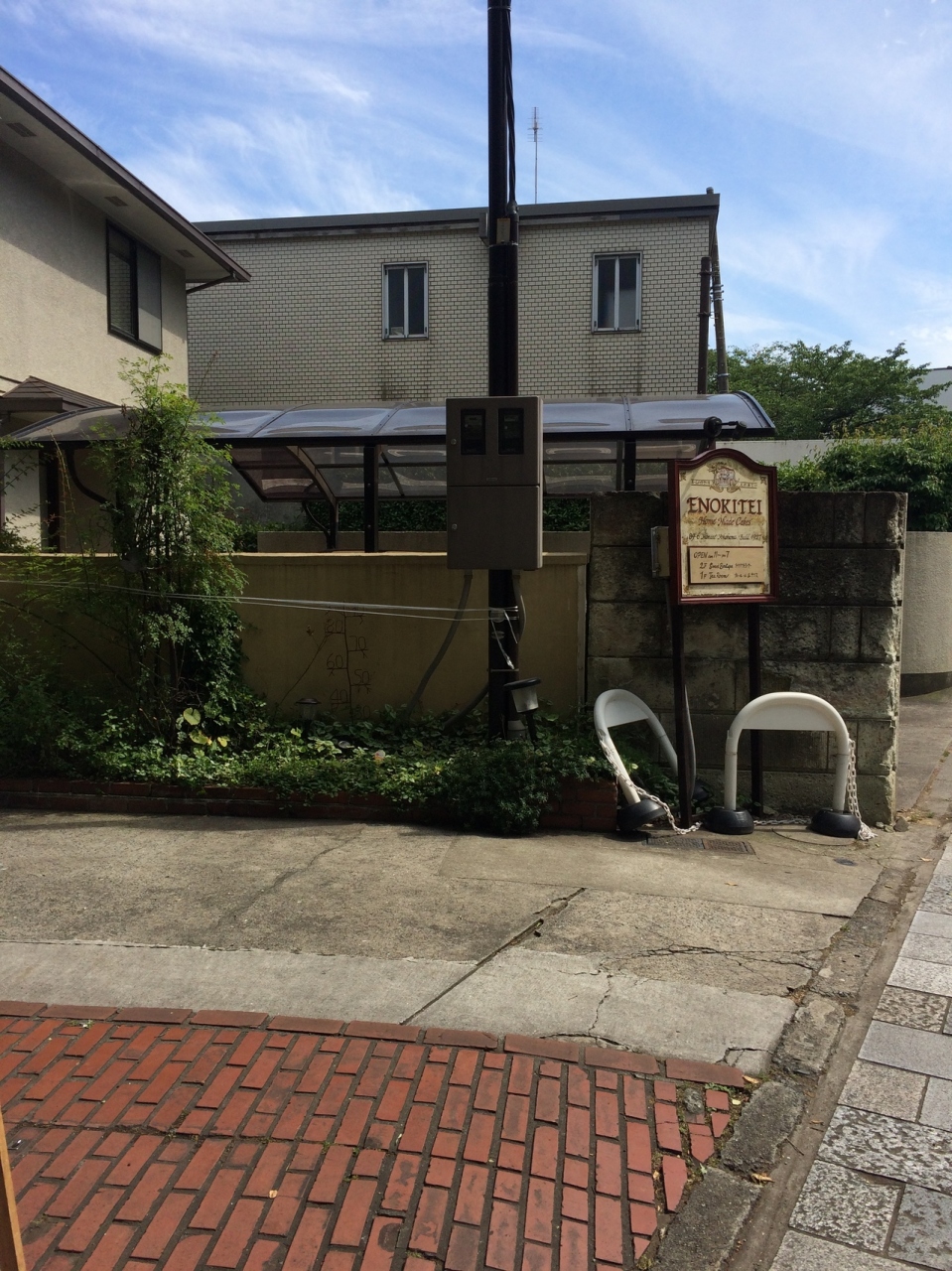 白い洋館で、貴婦人の館みたいな雰囲気の建物で物語に出てきそうです。えのきていと英語で書かれた看板が3個あるので、すぐわかると思います。エリスマン邸が近くにありました。ケーキや焼き菓子が手作りで、テイクアウトしているご婦人がいました。