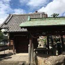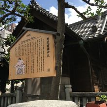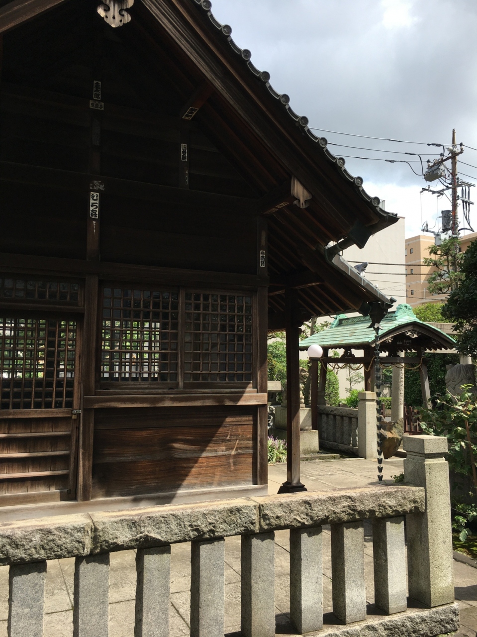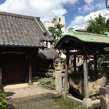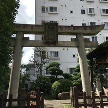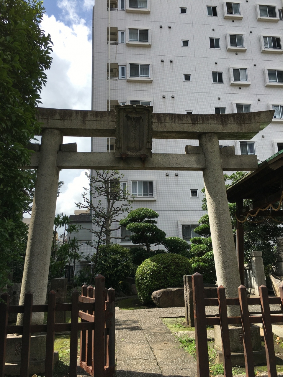 小さな境内で、社殿・鳥居が古めかしい感じがする神社で、手を清める水場の石が大きくくり抜いてありました。松が何本か植わっていてミニ盆栽のようでした。歴代横綱の碑があり、板のような石に名前が刻まれていました。