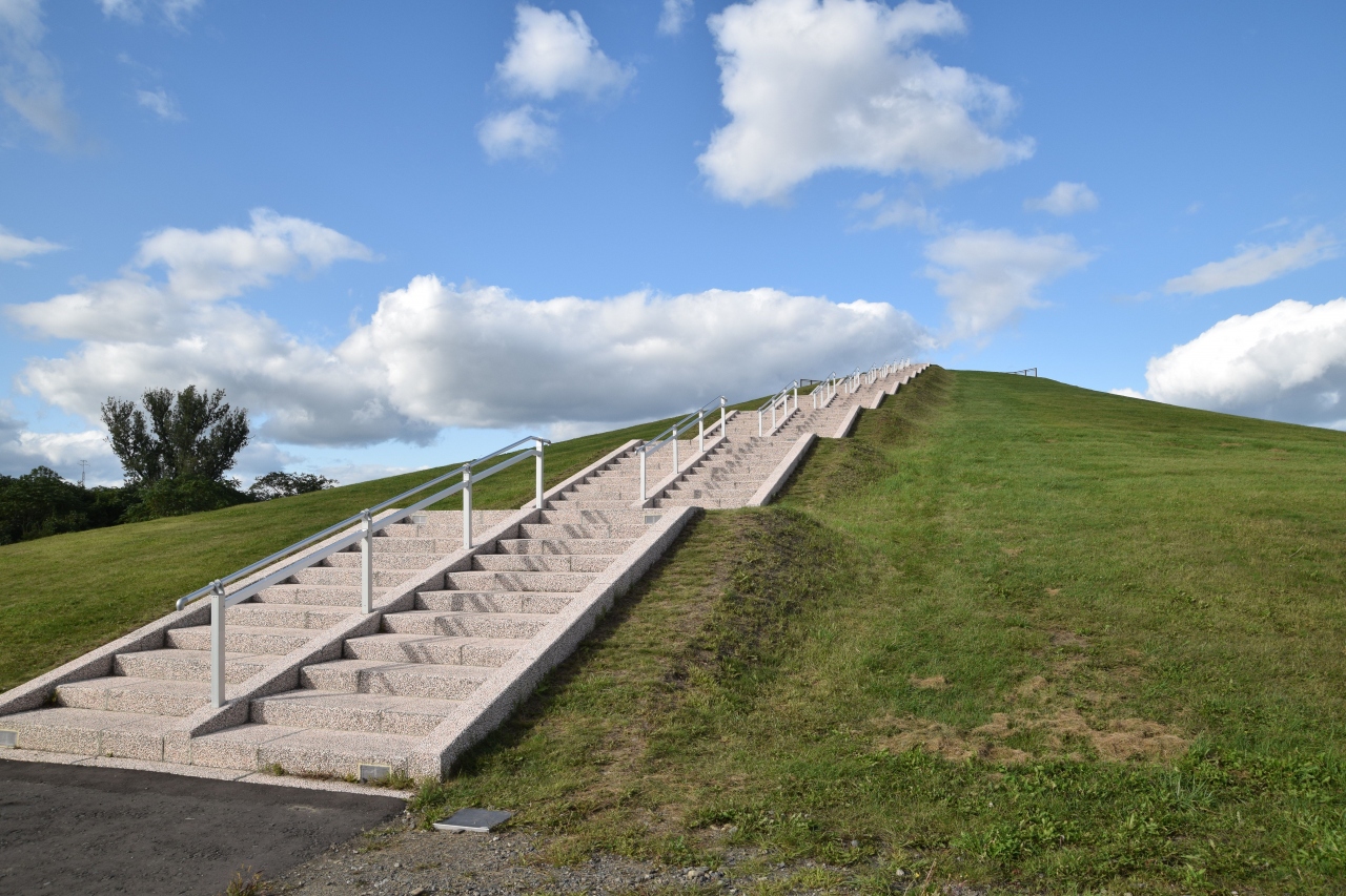 ゆるい階段を登ると日高山脈が一望でき、素晴らしい景観が楽しめます。