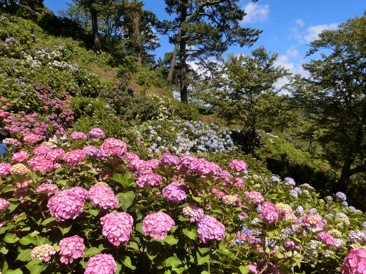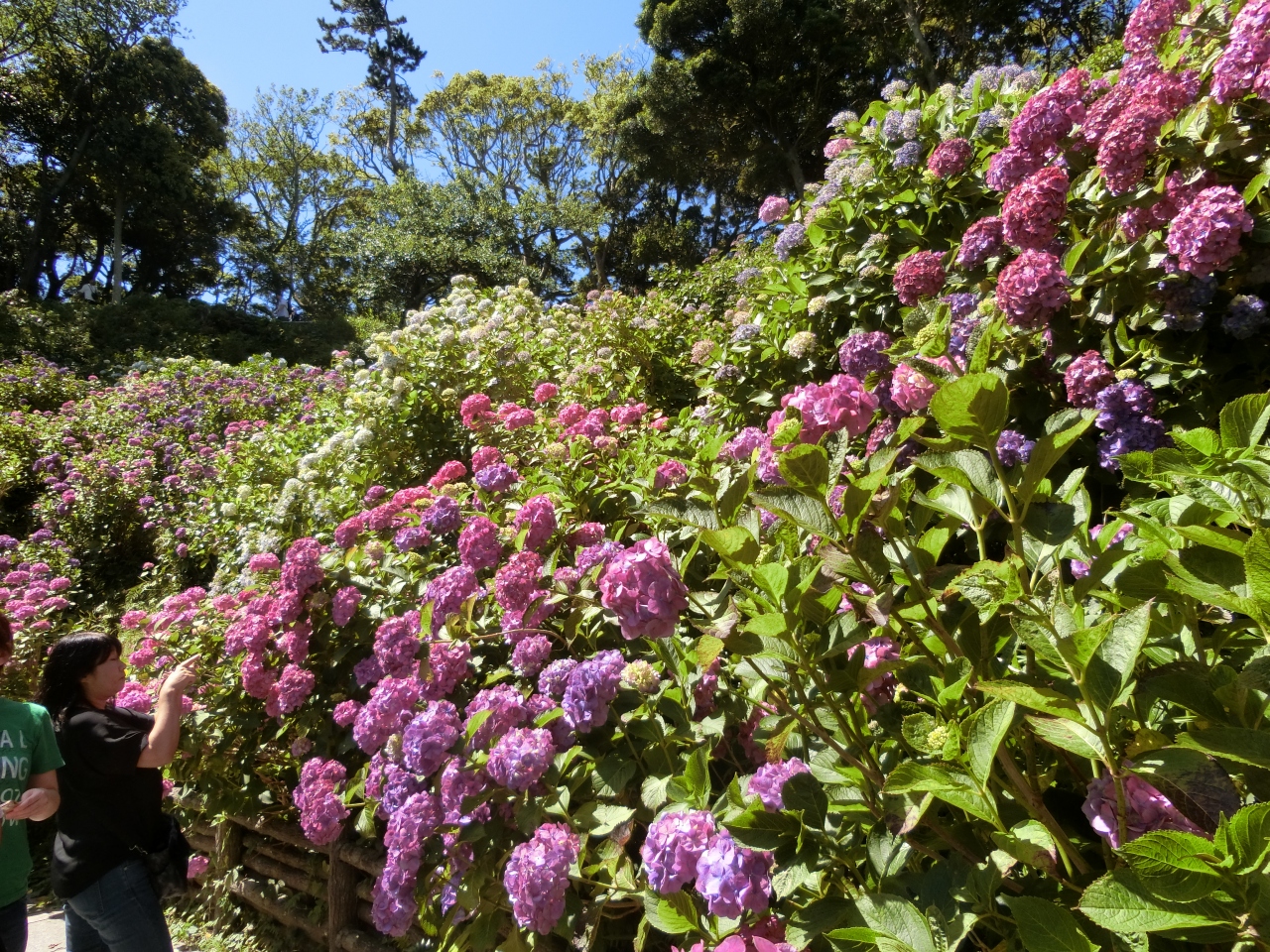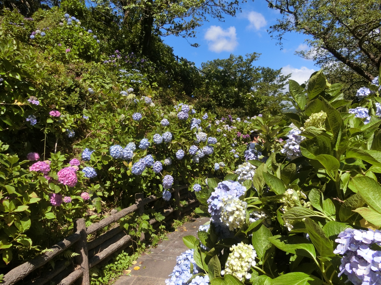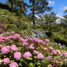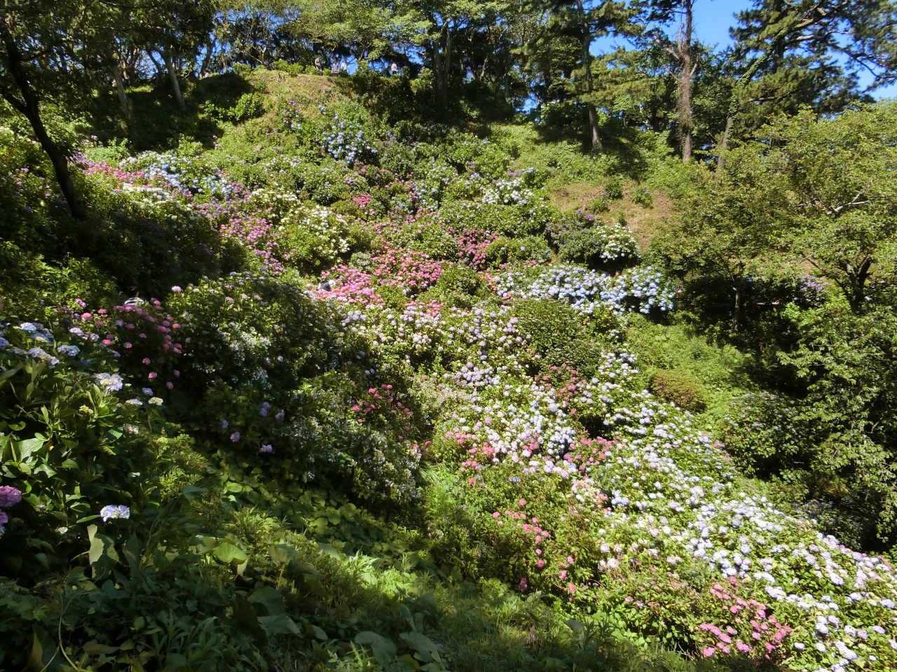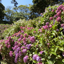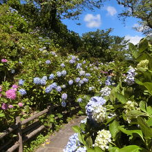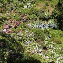 下田公園の一部がこの時期、あじさいの花で覆われました。