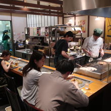 梅田のグランフロント大阪 南館 7Fにあるお好み焼き、ねぎ焼き、鉄板焼きのお店です。土曜日の18:30頃お店に行くとコの字型のカウンター席は既に満席。名簿に名前を書き待つこと20分で入店。ねぎ焼きを久々に食べたくて訪れたので、ねぎ焼とお好み焼き、焼きそば、生蛸ポン酢、げそ焼きを注文。期待していたねぎ焼は他の店で食べたねぎ焼に様に青ネギが少なく、もっと美味かった様な気がして残念でした。他の料理はそこそこ美味しかったのですが、期待を裏切られた感じでした。