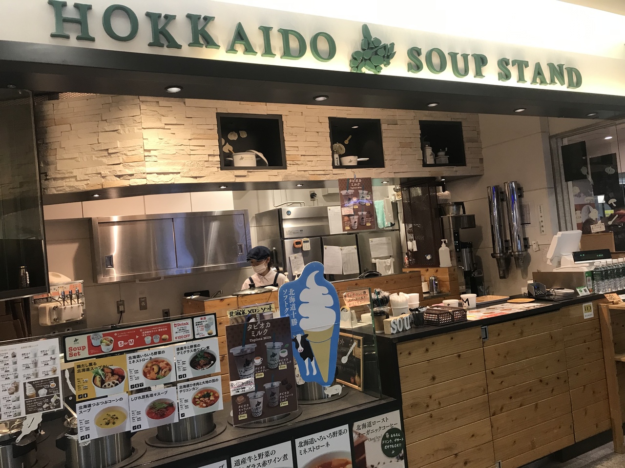 北海道らしいスープを飲むことができます。私が飲んだのは、大好きなスープカレー!具材もゴロゴロ入っていておいしかった。他にも北海道の食材を使ったスープが沢山あって胃に入るならば全て飲みたかった!パンもセットにできてパンも美味しかった。