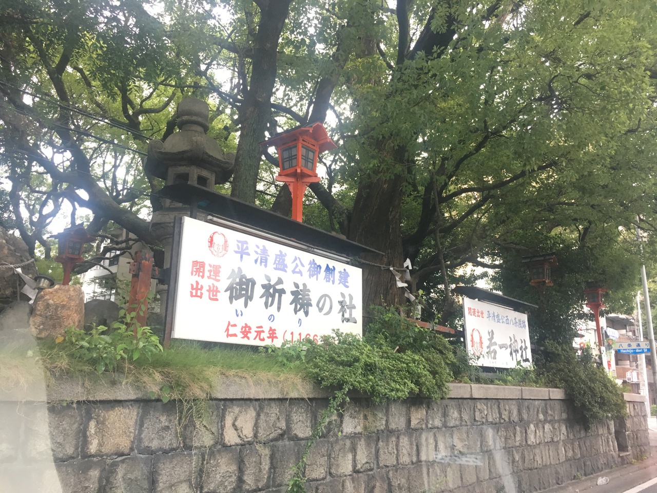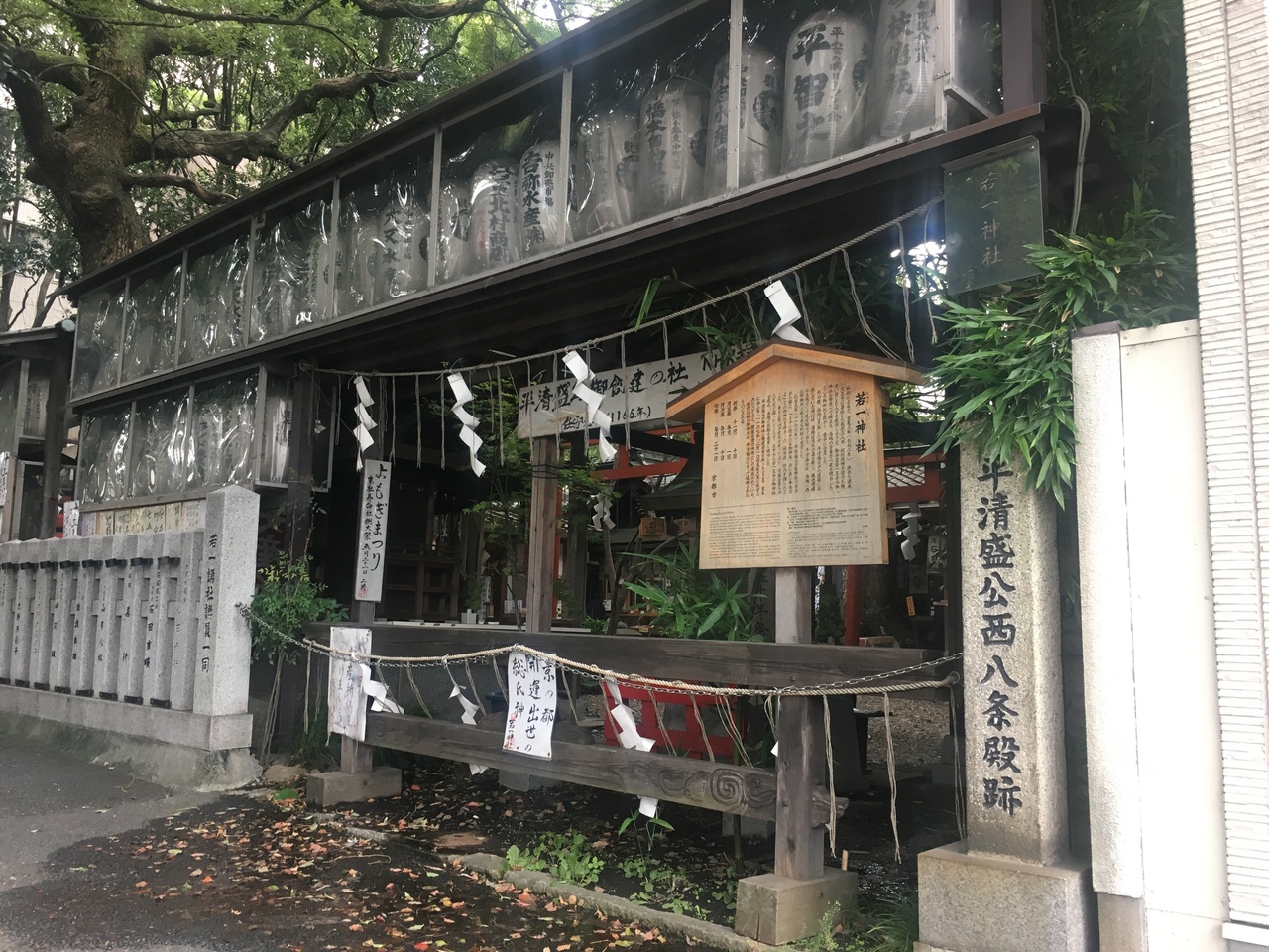 案内板によると、以前に平清盛公の西八条御所という別邸があり、この地から御神体が張り出されたため、社殿を造られたそうです。