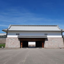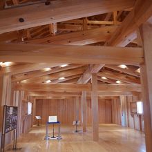 復元されたこの二の門内部を無料で見学できます。内部は檜の一種である能登ヒバが使われていて、まだ新しいこともありとてもきれいです。かつては弓などの武具を収納する場所だったそうです。復元工事の様子などの展示もありました。見学するには階段を登り、靴を脱ぐ必要があります。