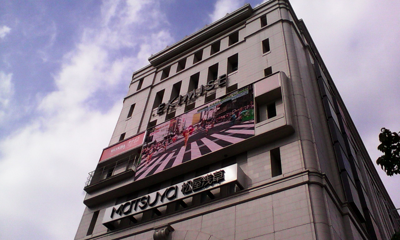 外壁の大型モニターでは地元の放送局がサンバ行列の様子を中継していたので目前を通ってる行列以外の様子を知るのに便利だったり、行列の通るルートのそばにある日陰スポット(商店街の屋根に比べると少し離れてますがそこそこ空いてました)ということで、暑い日差しの下でサンバを見た後ちょっと休むのにも活用できて助かりました。