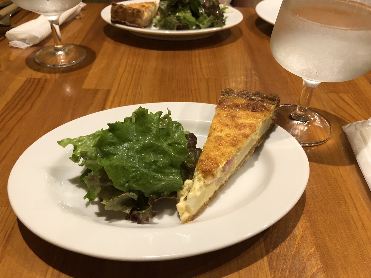 ランチメニューは1種類で、キッシュかスープのどちらかを選択でき、私たちはキッシュを注文。