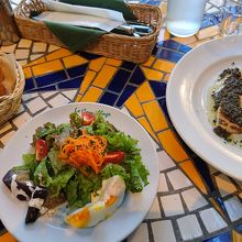 メカジキのソテーに、葉っぱだけじゃないサラダ(キャロットクミン、揚げなす、ミニトマト)ミニトマトはちゃんと甘いもの。ややドレッシングが多かった。