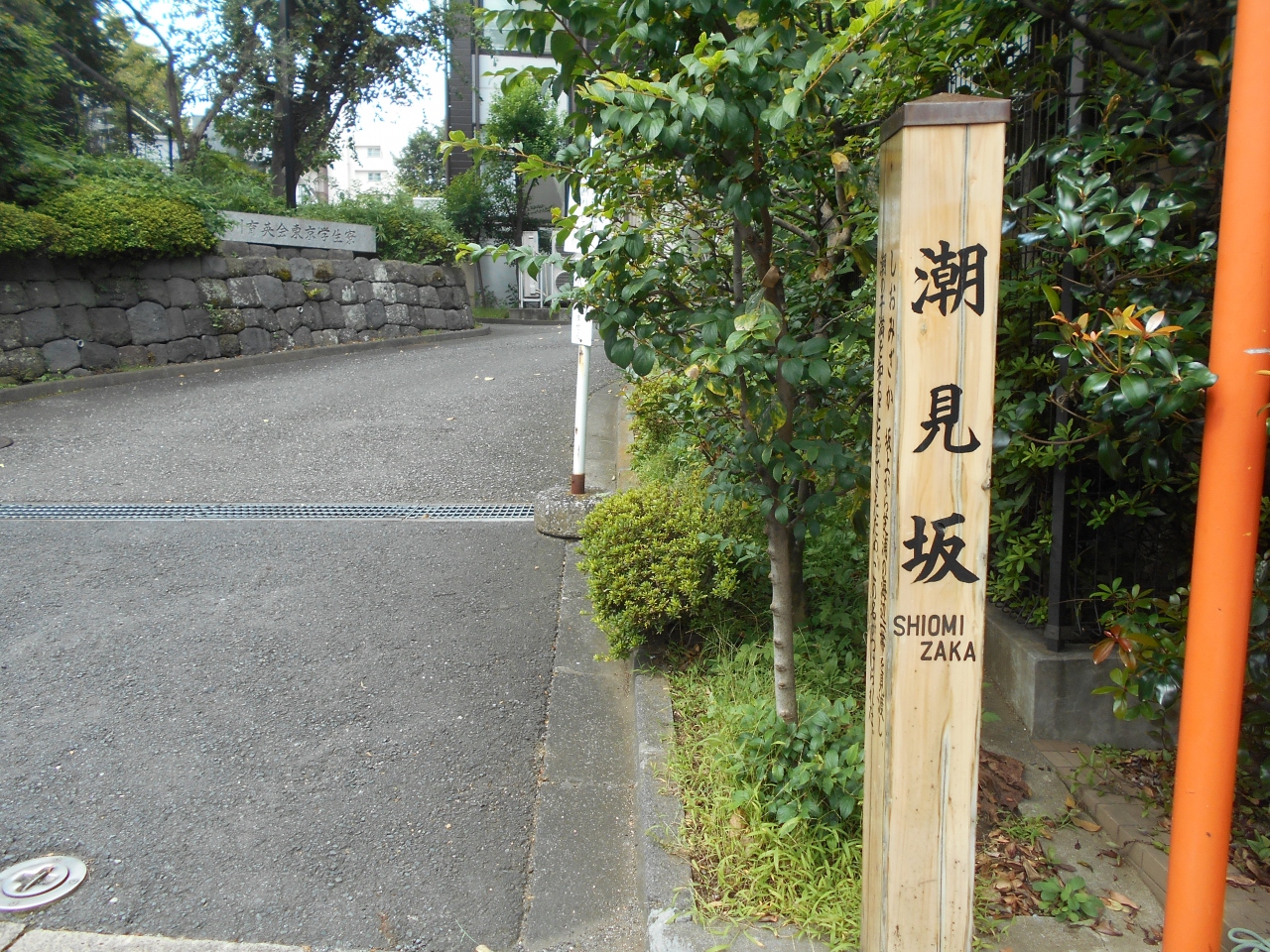 桜田通りから札の辻に向かう途中、三田駅近くで西に折れて、そんな丘の稜線に向い一直線に三田の丘を登って行くのが、東海道が開かれる前から高野聖が開いたという聖坂だが、その途中から北西に分岐する短い坂が「潮見坂」。