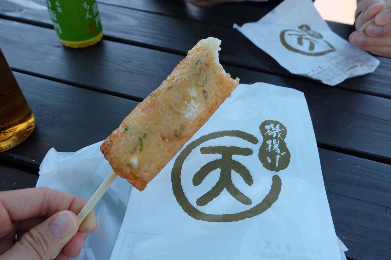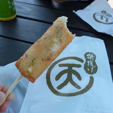 新名神高速道路にある土山サービスエリア内にあるお店で、伊勢志摩に本店があります。棒に刺さった形のものや、丸くて平らな形になったものなど、味もたこ棒、チーズ棒、じゃがバター天などいろいろなものがありました。棒にささった形のものは食べ歩きにちょうどよいです。