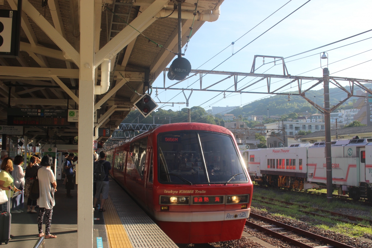 伊東から熱海まで乗りました。今回は「キンメ電車」でした