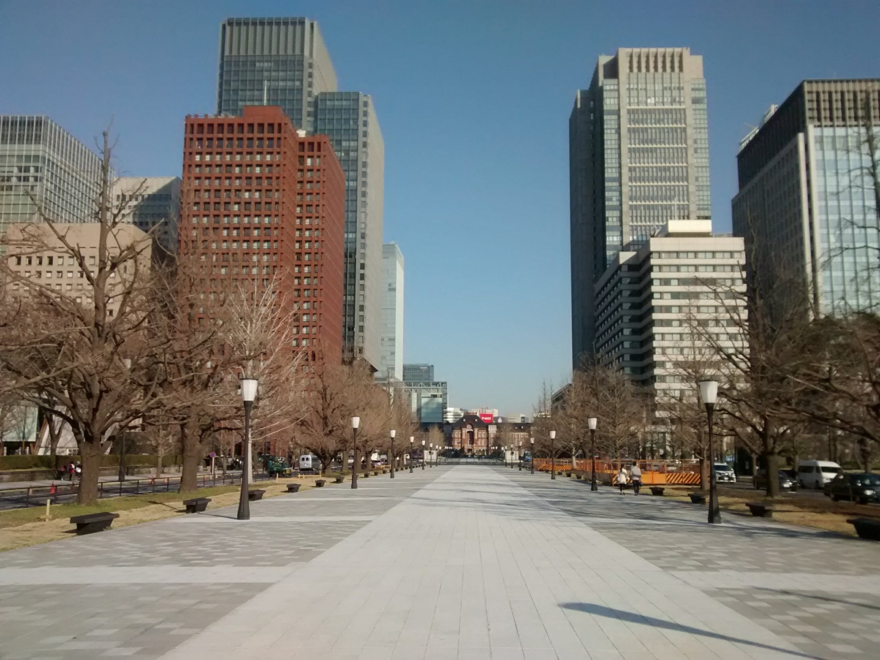 東京駅から皇居方面に伸びる幅の広いイチョウ並木の道路が行幸通りで、紅葉の時期のみならず、一年を通して素晴らしい景色が楽しめます。冬は、イチョウの葉っぱがないので、暖かい日光がたくさん差して、日向でベンチに座りながら休憩すると最高です。