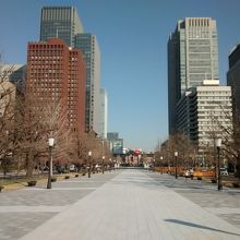 東京駅から皇居方面に伸びる幅の広いイチョウ並木の道路