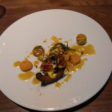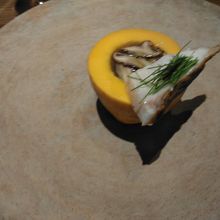 一品一品は小さく、そして絵になるアレンジ、料理もアマダイの熟成にフルーツをはさみ。。説明は詳細忘れましたが、珠玉の手間のかかった料理の数々で、とてもお腹に優しく、美味しいです。ちゃちなお野菜フレンチ、なんかとは違います。メインは鹿肉ですが、牛肉よりも柔らかく、臭みがなくて美味しい。パパイヤを器にしたスープ仕立て。