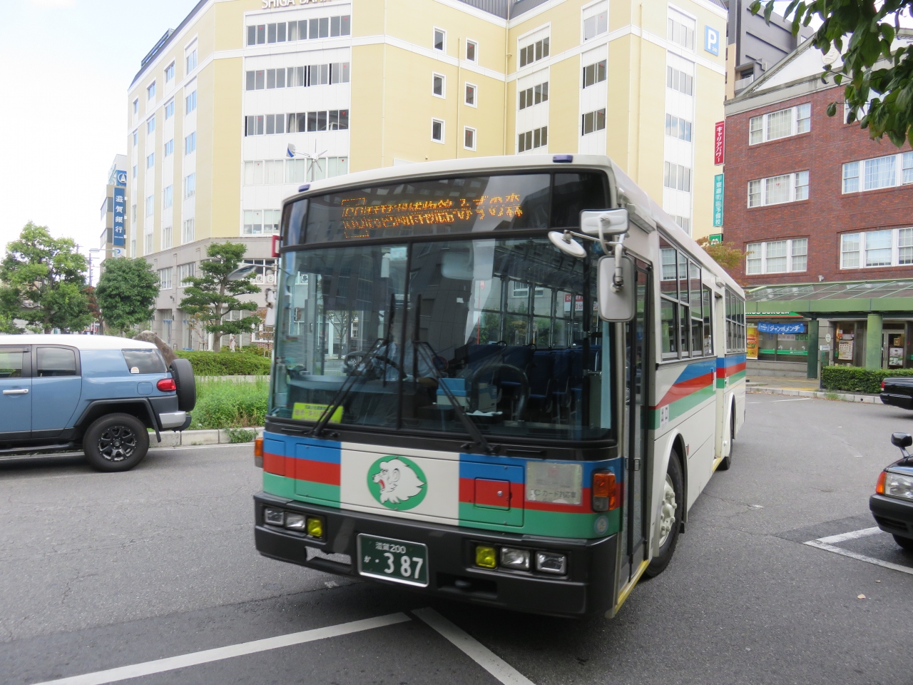 草津駅から琵琶湖博物館まで。最初は広い道を走っていたのですが、途中バスが田んぼ道を走り始めました。両側に稲穂が揺れるでこぼこ道をガタゴト走ります。