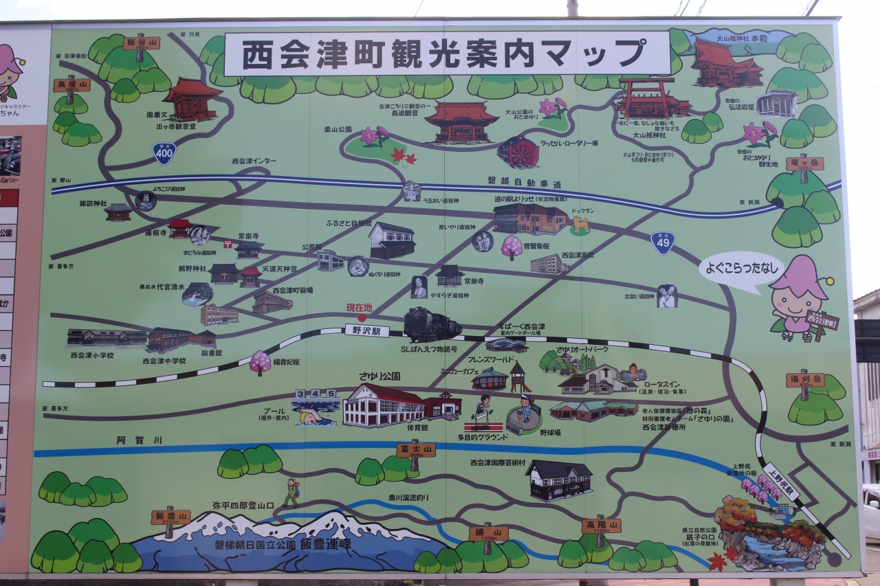 JR野沢駅からの直線道路と町を横切る国道49号線の交差地点、西会津町の中心にある道の駅です。