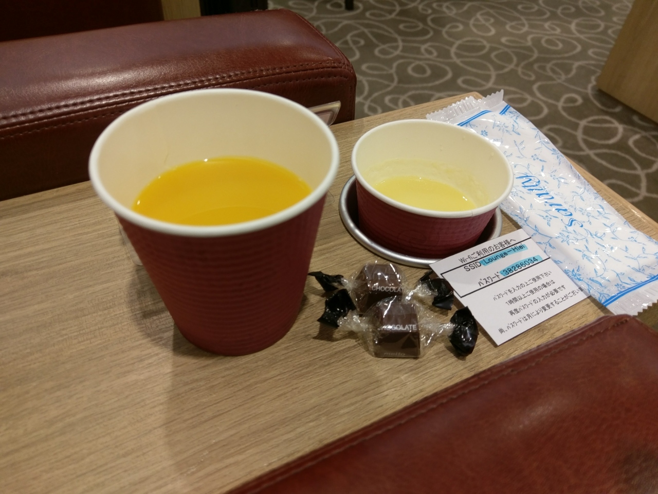 第一ターミナルにあるラウンジですが、制限エリアにあるわけでもないため、時間に余裕があれば第二ターミナルから搭乗する際にも立ち寄れます。100%のミニッツメイドジュースとお手拭がけっこうしっかりしているのが高評価です。