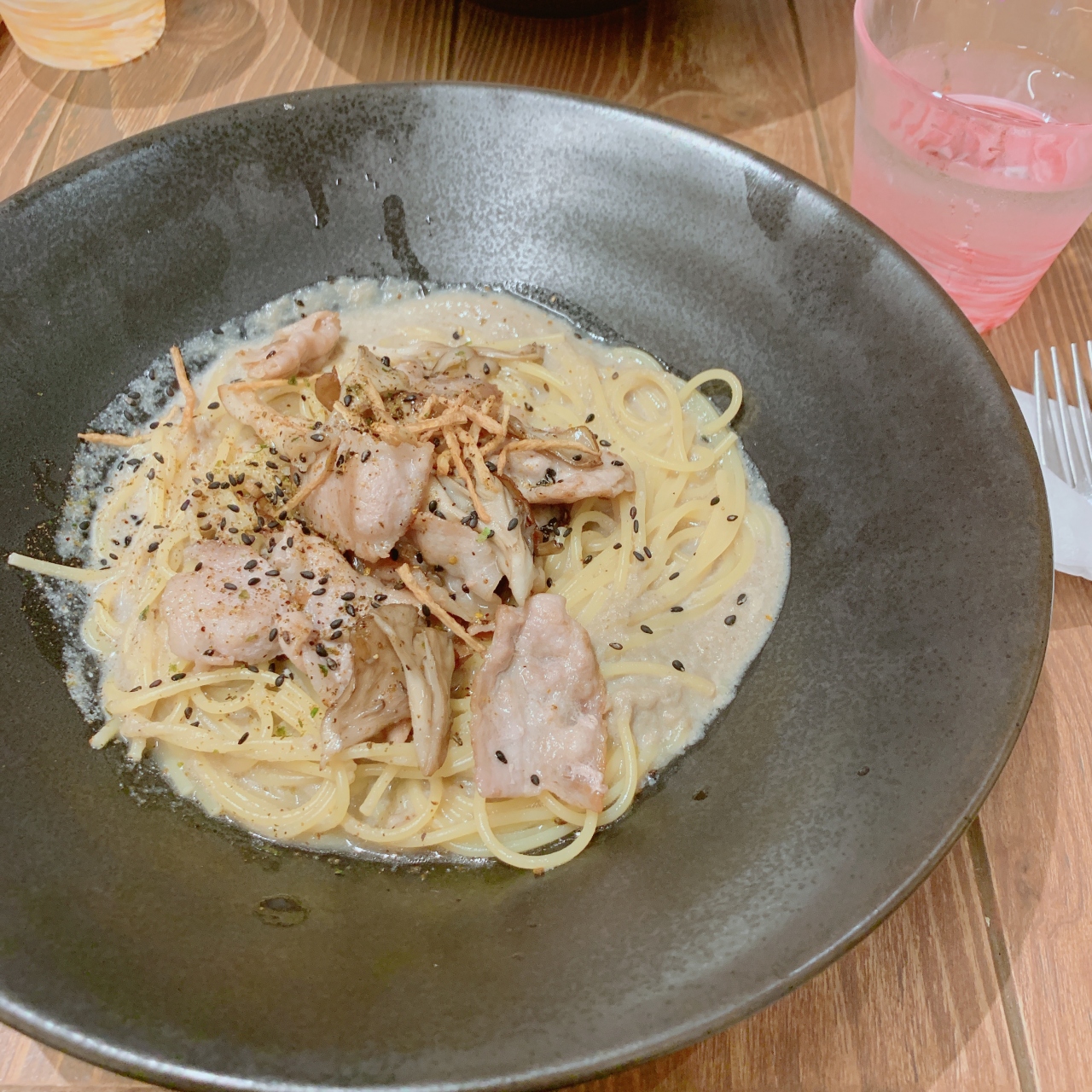 女子受けするパスタのお店です。カフェなので入りやすいし、スイーツも充実しています。映画の前にこちらで和風のスープなパスタを食べました。豚肉って焼きそばな雰囲気になるもんなんですね。おいしくて満足しましたけども。
