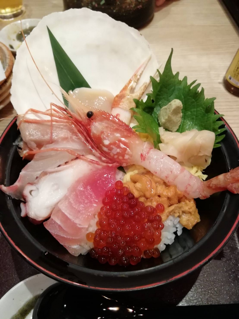飲みではなく食事目的で入ったので、海鮮丼をいただきました。エビはおいしかったですが、その他の魚はいまいちでした。ボリュームもあまりなかったです。