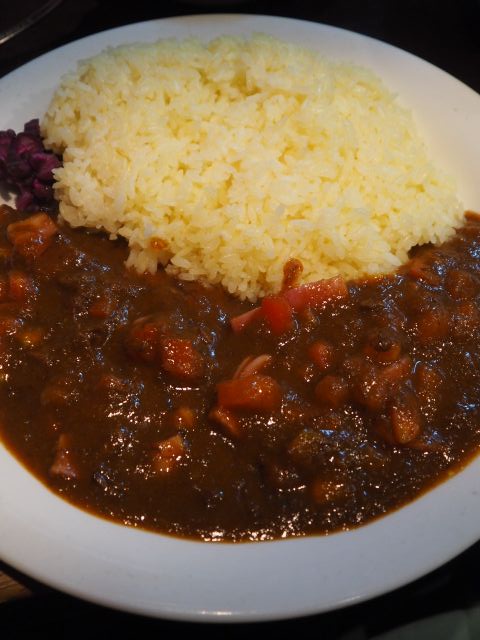 基本となるビーフカレーに、トマトとベーコンを加えている。スパイスの香りに、トマトの酸味や甘みが加わり、独特のカレーに。ベーコンが、食感に変化をもたらしている。辛さは、普通に留めたので、ほんのりと感じる程度で、食後も残る程ではない。