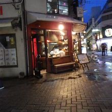 本通のアーケード街の一本北に走る道に面した小さな店。席はカウンターのみで、テーブル席はない。10人入ると満席になると思われる。