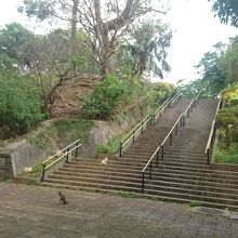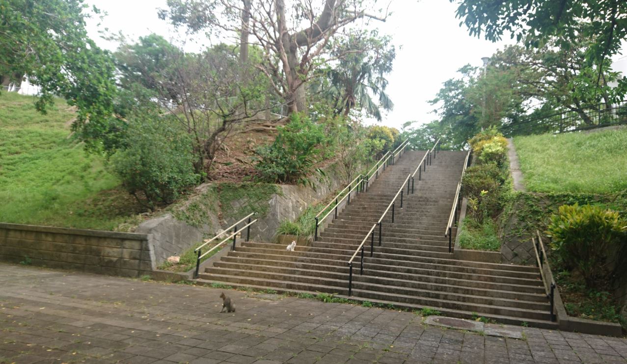 希望ヶ丘公園は牧志公設市場と市場通りを挟んで反対側にあります。その市場通り横にほど近い小高い丘にある希望ヶ丘公園。ちょっと長い階段を登って行くと良く整備された広場があり、お休みや休憩スポットとしてお勧めです。園内にはハイビスカスなどの木が植えられています。