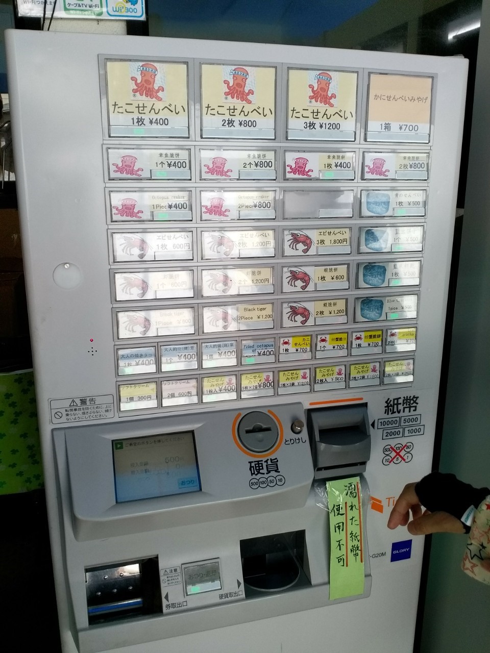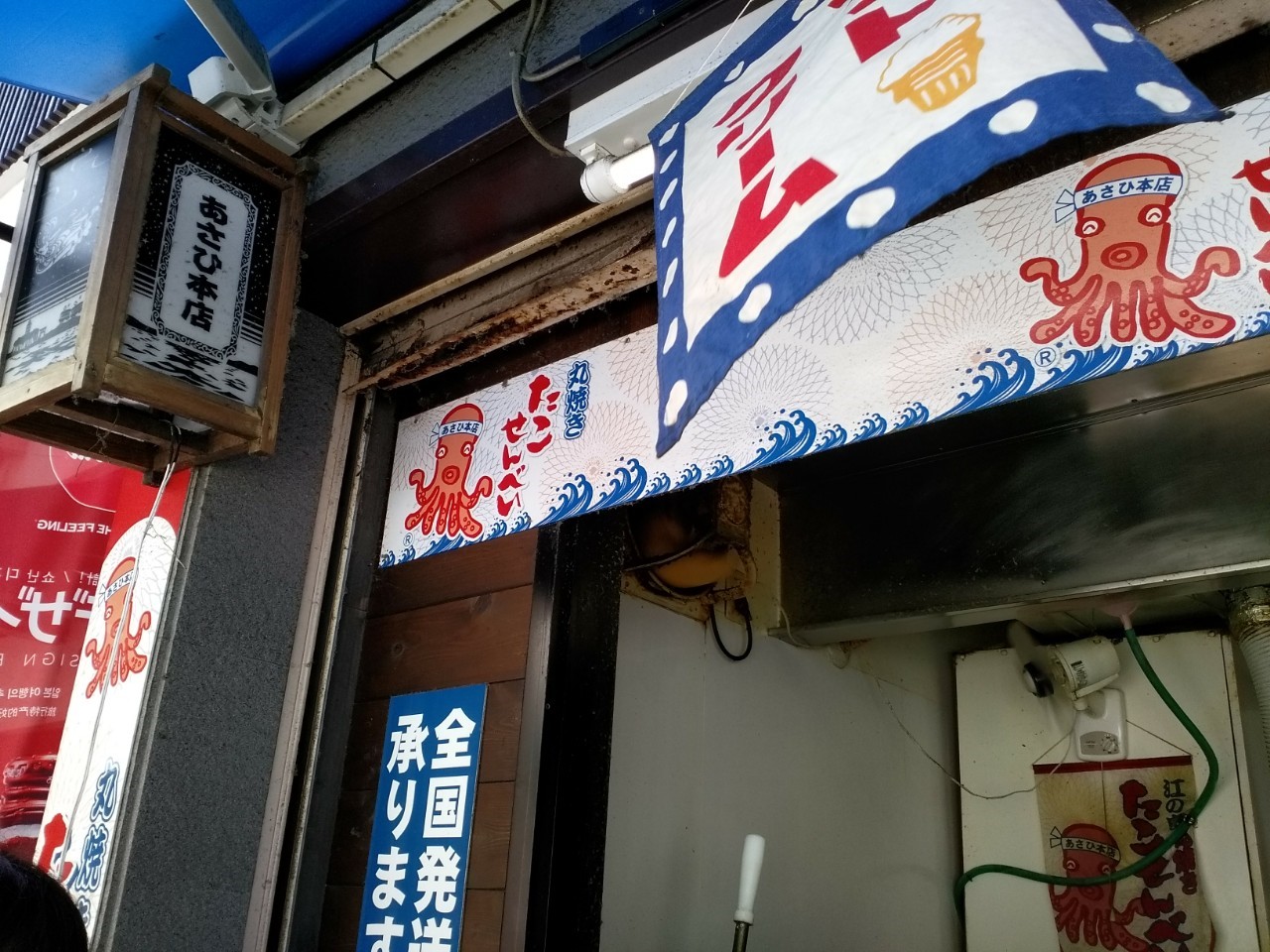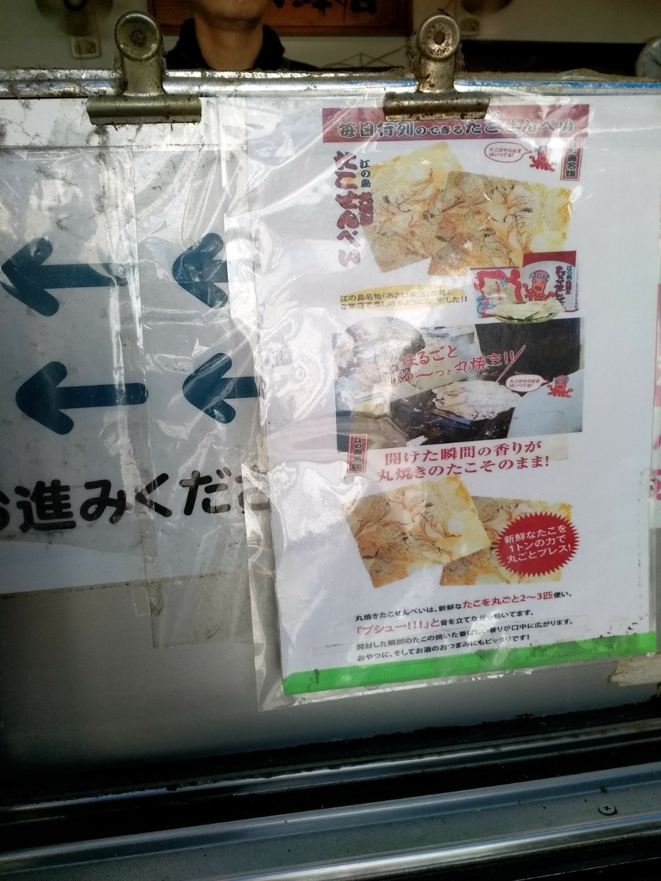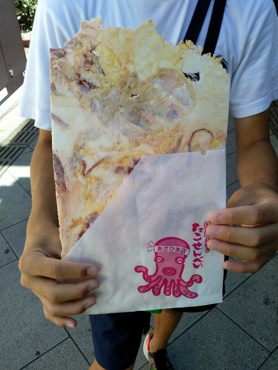 江の島名物のあさひ 本店が店頭で作り出来上がりを販売してその場で食べる丸ごとたこせんべいを孫と訪れ食しました。