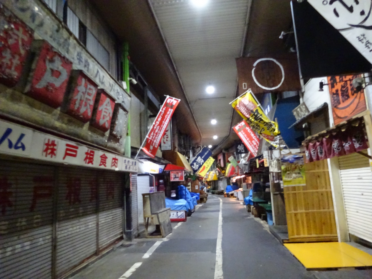 他の旅行記を見て閉まっていることもあることは知っていました。また台風の影響もあるかもと心配していましたが、行ってみるとやはり閉まっていました。でも、この店が詰まった感じ、のぼりを見ても普段は活気があるんだろうなと想像できました。