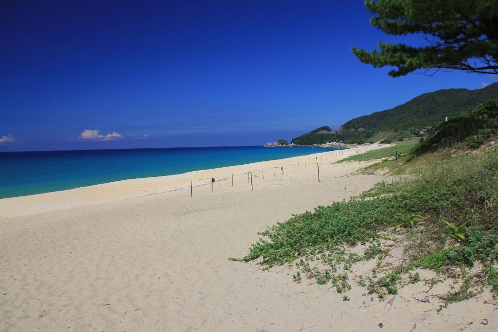 砂浜にロープが張られている区画があり、これがもしかするとウミガメの産卵場所なのかもしれません。
