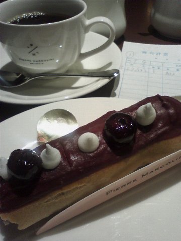 コーヒーが無料でいただけるので、デザート1品でセットになります。人気のエクレアは季節ものを含めて
