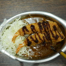 エビフライは揚げたて(たぶん)が2本。Sサイズでも十分おなか一杯になりました。