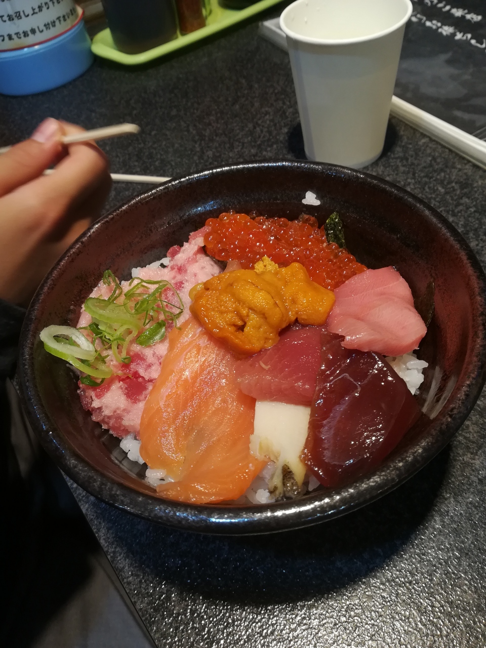 敦賀の日本海さかな街は、 敦賀港直送の鮮魚店などが50数店と海鮮丼を食べられるおみせなど17店舗の飲食店が軒を連ねる巨大海鮮市場です。土日はたくさんの観光客が訪れます。鮮魚店では色々値切ってもらいながら買い物するのは楽しいですよ。今回は甘えびとカニを買いました。