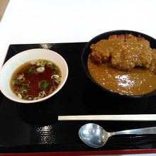 消費税上がる直前でしたが、平日だったせいかフードコートも混雑なしでした。並んでる天ぷらも少なかったのでカツカレー丼を食べました。福神漬が苦手なので抜いてもらいました。ご飯もルーもたっぷり、カツもそれなりの厚さで、かなり食べごたえありました。単品注文でしたが薄味の蕎麦つゆのような汁物も付きました。