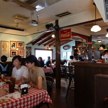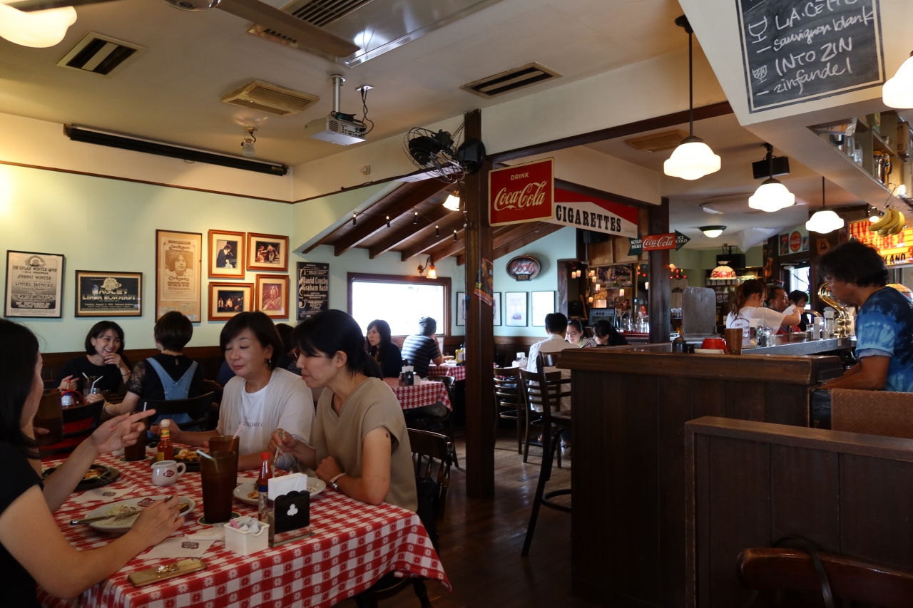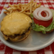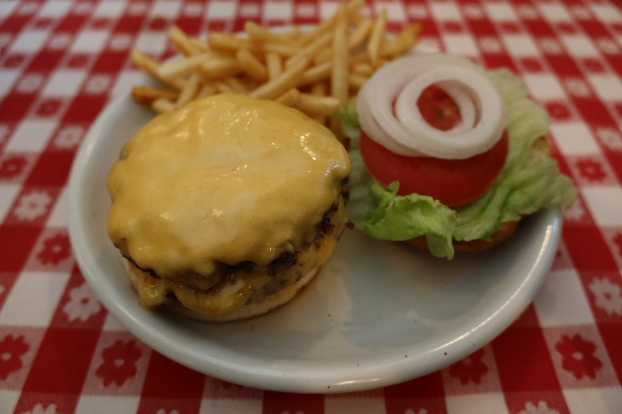 市が尾駅から歩いて12,3分の所にあるレストランです。表通りから住宅街に入った所にありますが、裏手に大きな駐車場があり車で訪れる人が多いです。店内はカウンター席とテーブル席があり店内の装飾はアメリカのレストランの様です。頂いたのはダブルチーズバーガー。チェダーチーズの乗ったパテ、玉ねぎ、トマト、レタスと適度に焼かれたバンズが如何にもアメリカンなバーガーで、ファストフードの物とは段違いに美味しい。店内がちょっとうるさいのが難点ですが、これもアメリカンなんでしょうね。