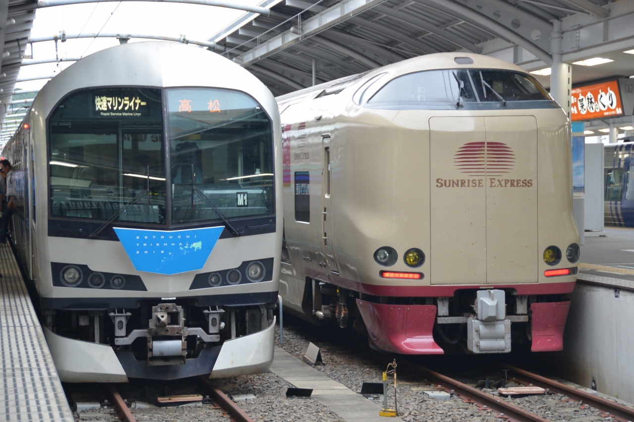 岡山でサンライズ出雲を置いて先に出発し、児島に停車した後はいよいよ瀬戸大橋を渡ります。瀬戸内は大小の島々が車窓を彩り、どの路線を走っても気持ちが良いのですが、坂出までの15分強も素敵な景色を堪能できます。