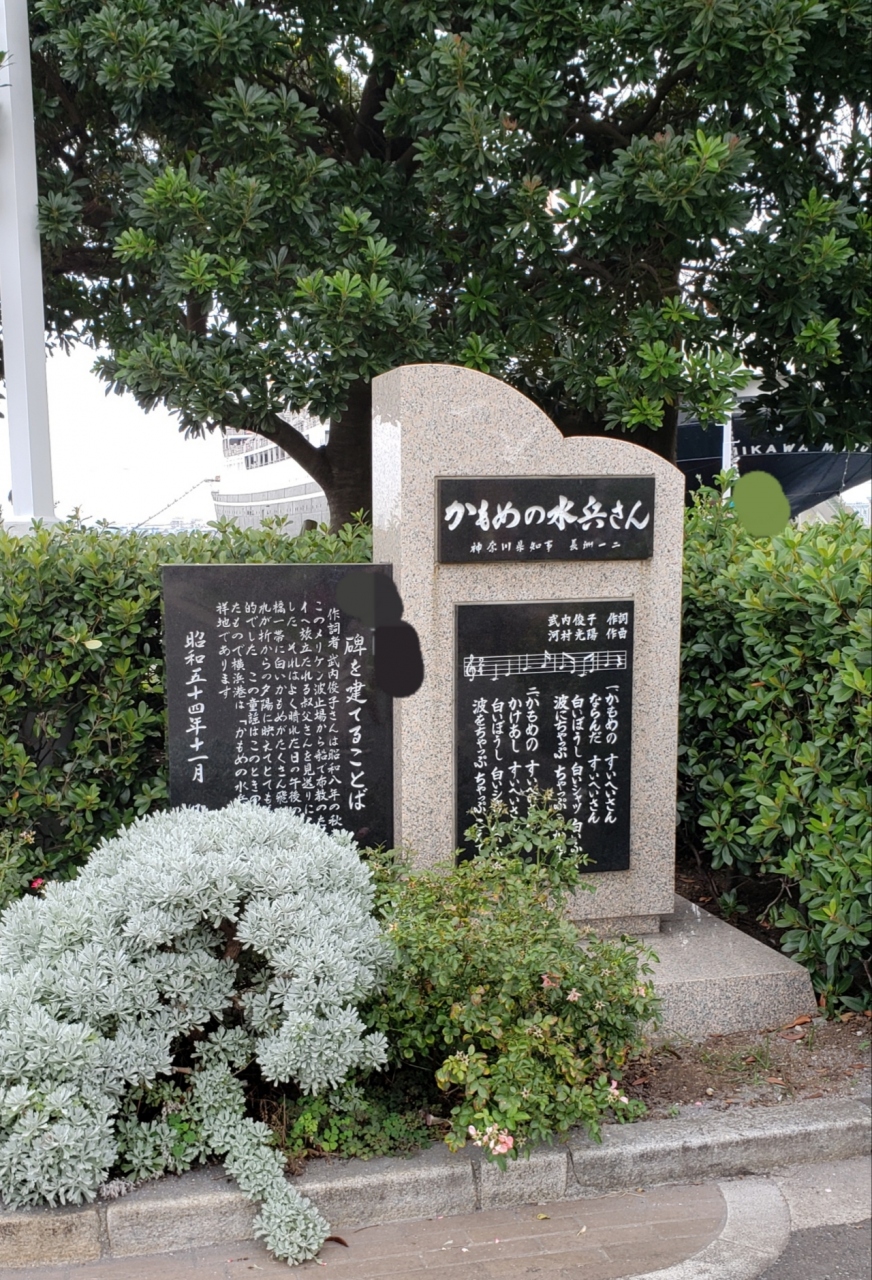童謡「かもめの水兵さん」は作詞家のかたが昭和8年秋に横浜の波止場からハワイへ旅立ったおじさんを見送ったあとに思いついた詩だったということでこちらに歌碑があるのでしょうね(他にも全国には生誕の地にあるようです)