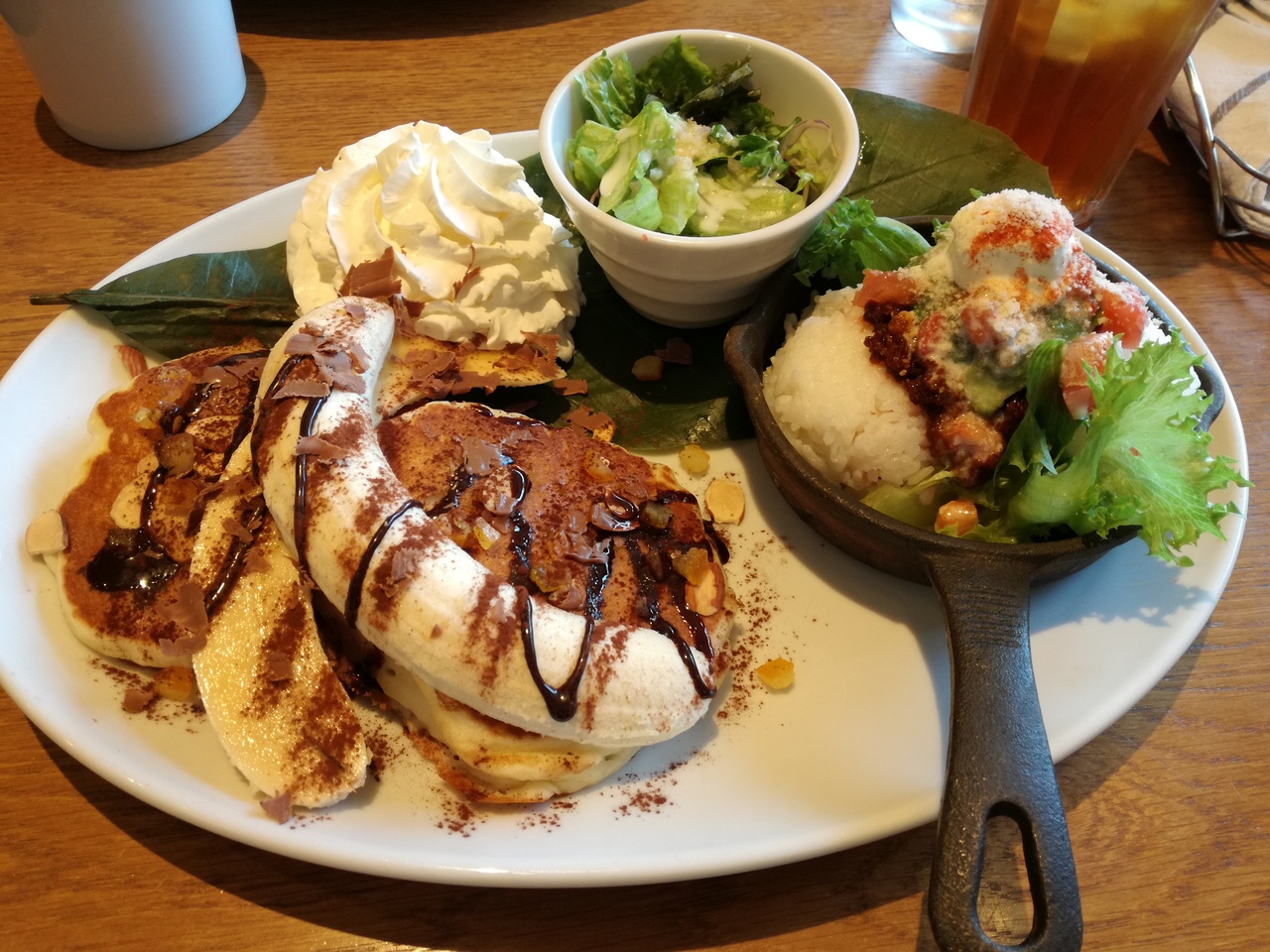 ランチ時でお得なラナイセットを注文。タコライスとバナナチョコのパンケーキがプレートになったものを食べました。美味しい!けど量が多い…生クリームがたっぷり乗っていましたが、おそらくホイップクリームなのかと思われます。