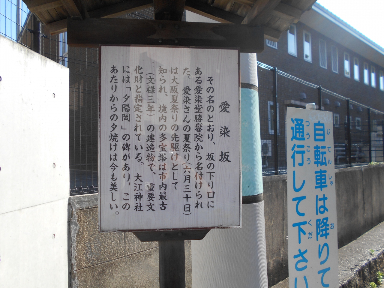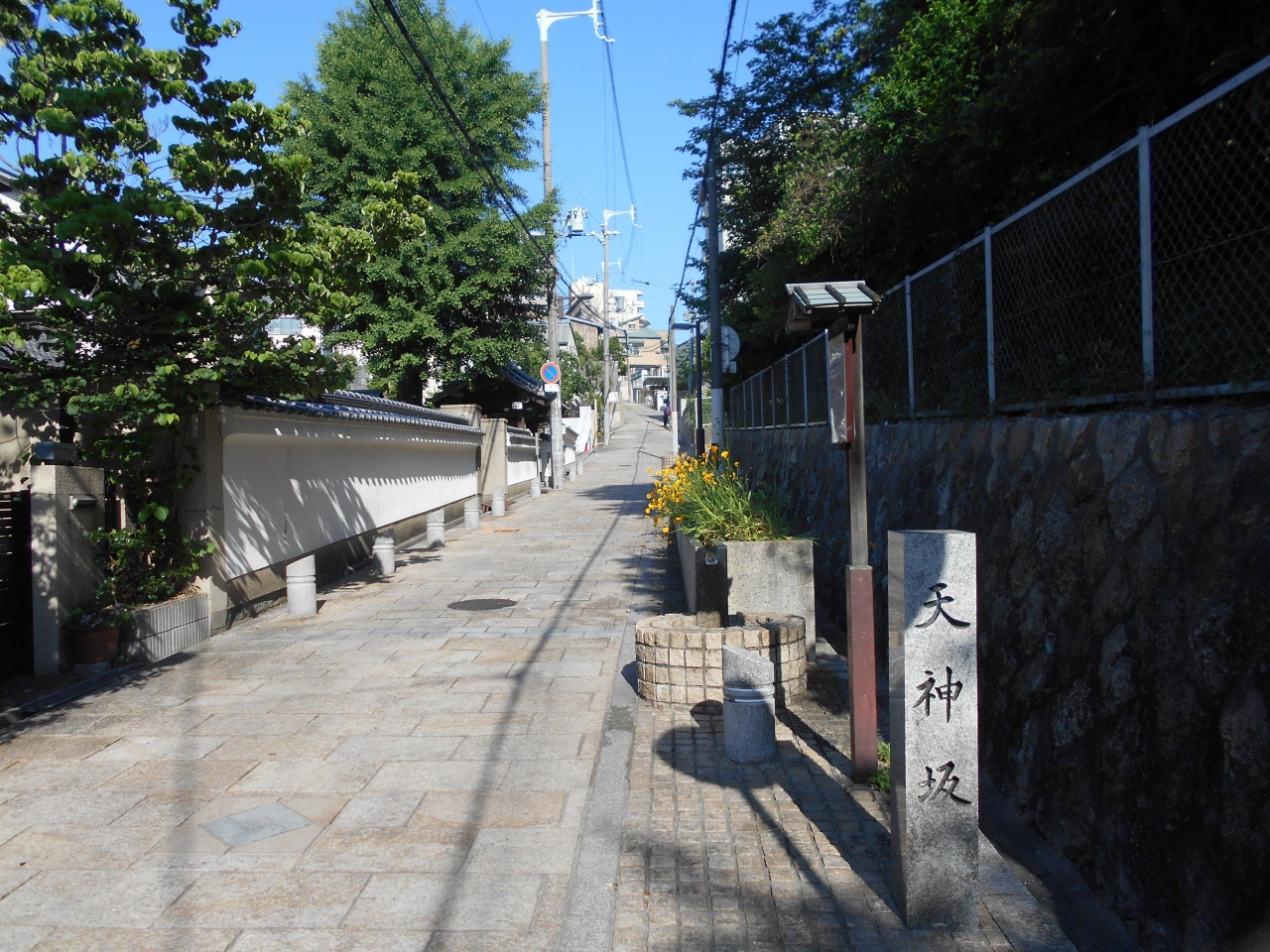 天王寺夕陽丘の周辺にある坂。今から7000年前の縄文時代前期この周辺は海岸線で波に削られた波食崖が形成され、高地が上町台地と呼ばれその台地と低地を結ぶ七本の坂道が天王寺七坂と呼ばれています。南は逢坂に始まり天神坂、清水坂、愛染坂、口縄坂、源聖寺坂、真言坂と北にあります。坂の周辺には由緒ある神社や寺が多く建ち雰囲気ある場所となっています。