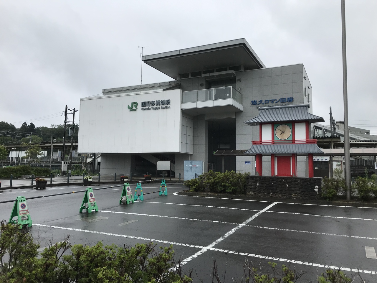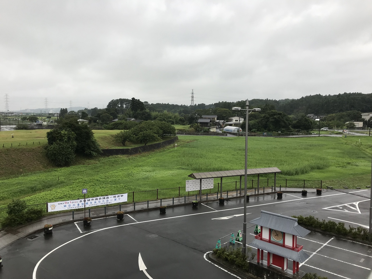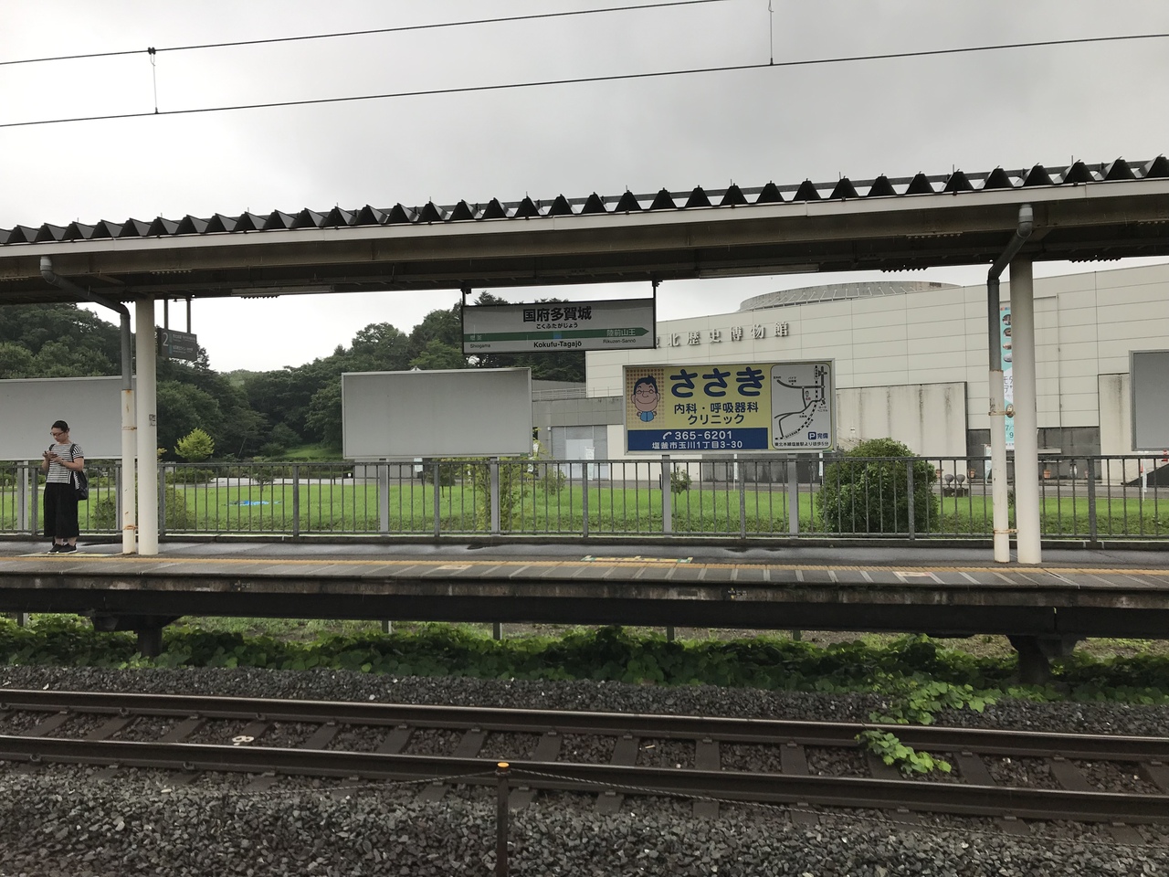多賀城跡の最寄り駅で、駅からは多賀城跡がすぐそばのように見える。