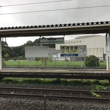畑など緑に囲まれた中にポッント横たわっているように駅舎があった。