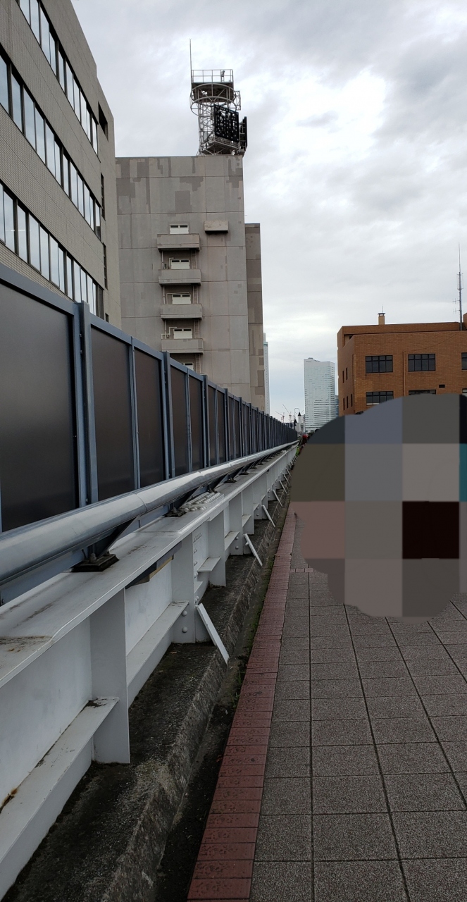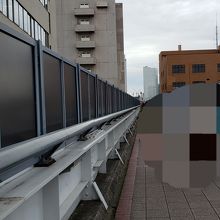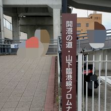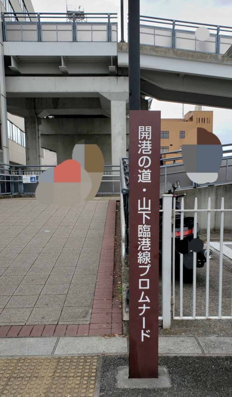 新港地区と山下公園をつなぐ遊歩道で昔の国鉄の貨物線路の高架橋部分を使っているためほぼ高架の上を歩くことになります。(エレベーターやスロープはあります)