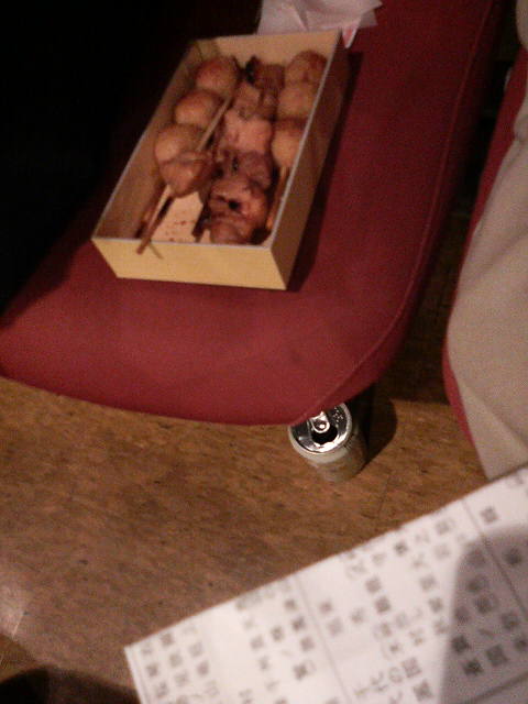(箱が小さめで膝の上に置くとちょっと不安定なので、空いていた隣のイスに置かせてもらいました)