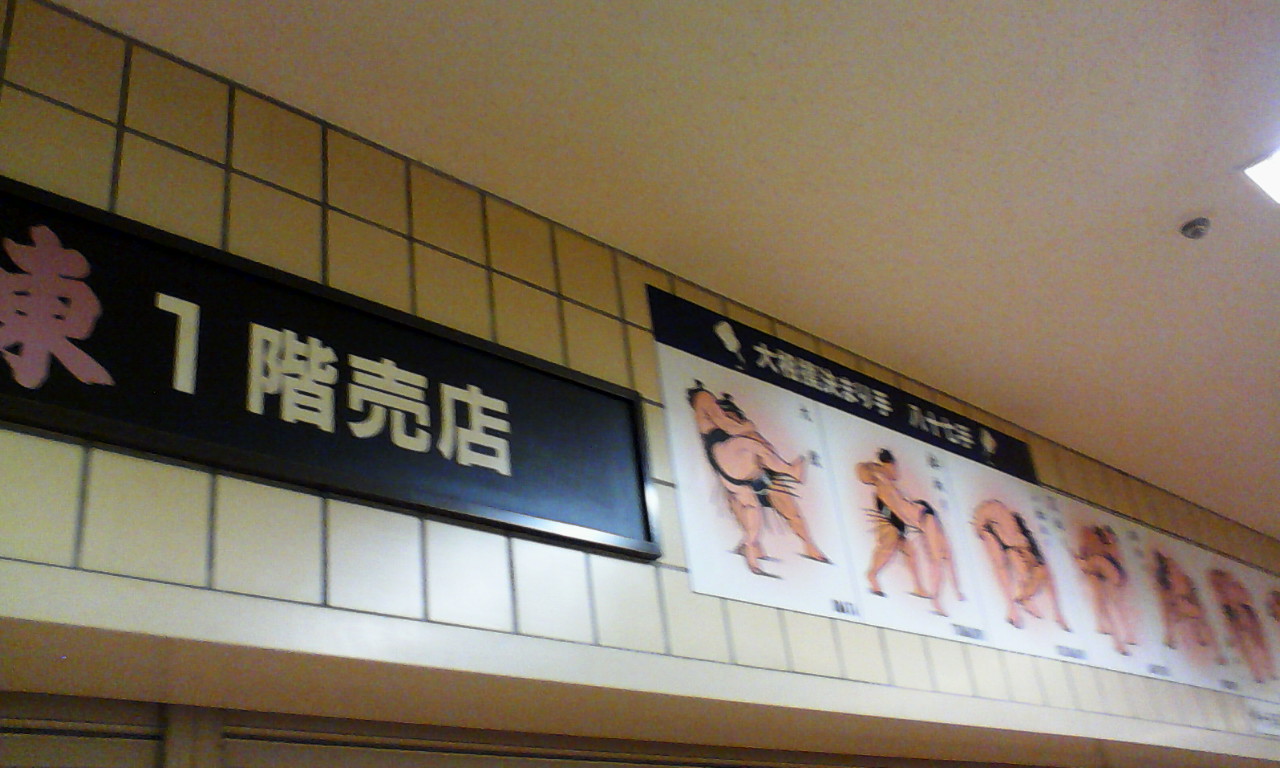 (看板の横には「大相撲決まり手八十七手」がイラスト入りで説明されてて、さすが国技館という感じでした)