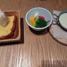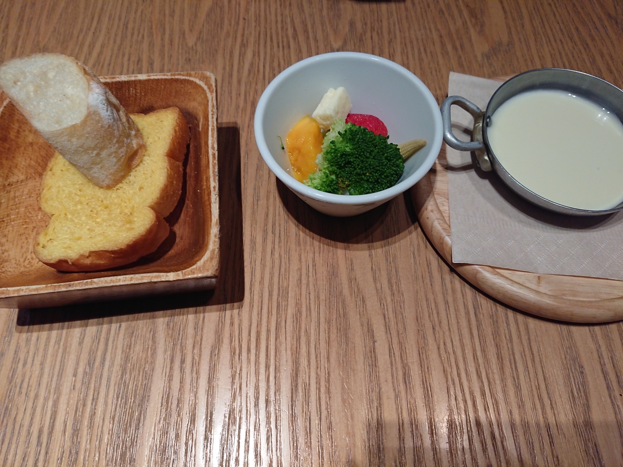 前菜に、冷たいチーズフォンデュが付いてたんですが、これがかなり微妙。