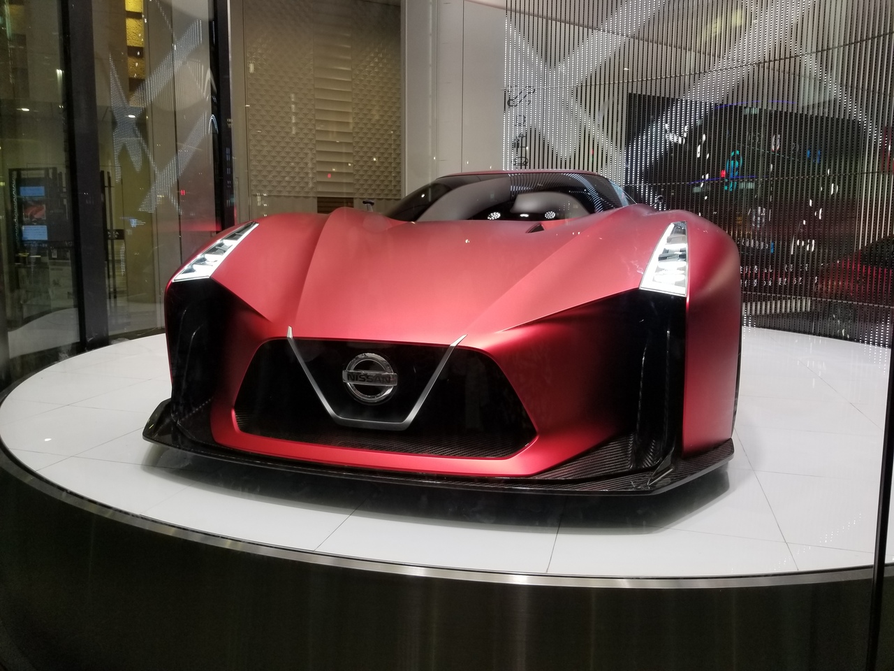 NISSAN CROSSINGにはとても高級な車が飾られていて男性や外国人の方々が沢山写真撮影をしている。