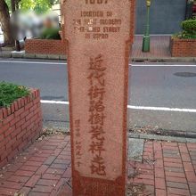 馬車道沿い、地下鉄の関内駅の出入り口辺りにあります。1867年に馬車道沿いに景観を良くするために植えられた柳と松が近代街路樹の始まりとされています。現在の都市部では柳や松の街路樹はあまり見かけないですが柳や松が並んでいれば景観は相当良さそうですね。