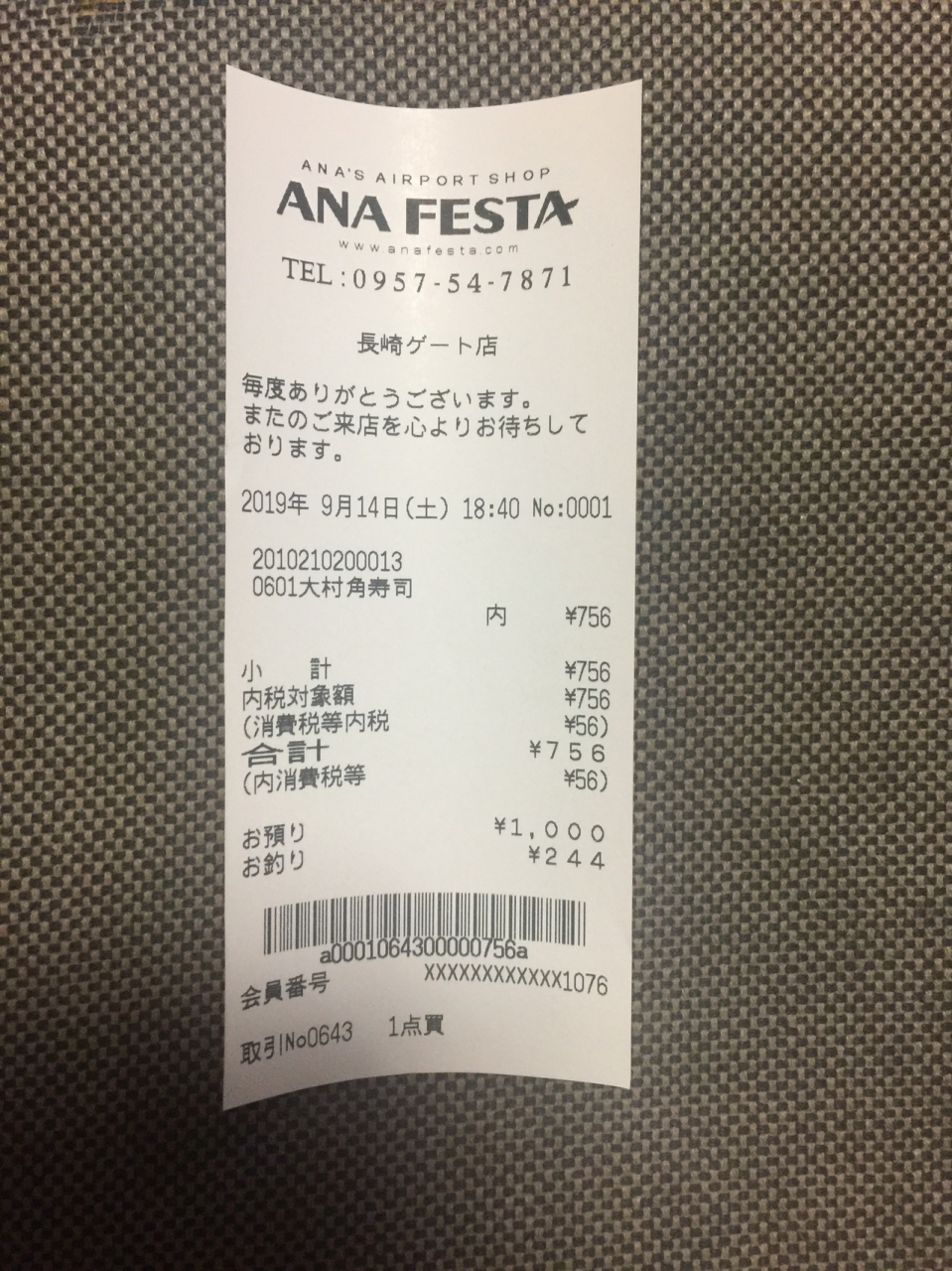 ANAの搭乗口近くにある売店。ふつうこういう売店には定番商品以外にたいしたものは置いていないのだが、ここでは大村名物角ずしなるものを発見。756円と手頃な価格だったので、つい購入。味はまあまあ。こんな商品をひとつでもふたつでも置いてほしいもの。