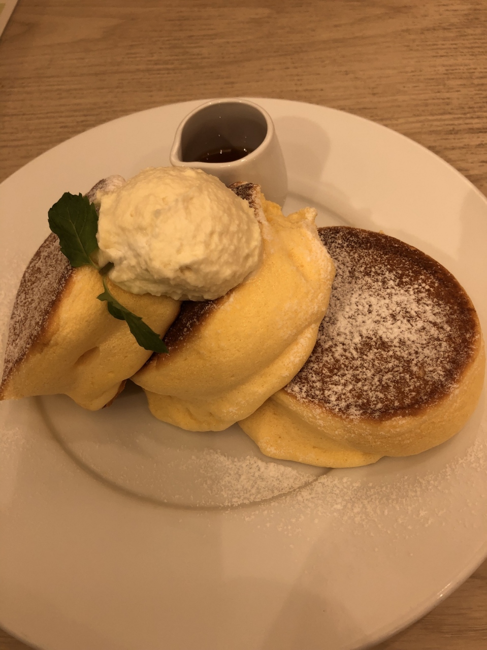 定番のパンケーキを注文しましたが、想像どおりフワッフワでペロリと食べてしまいました。